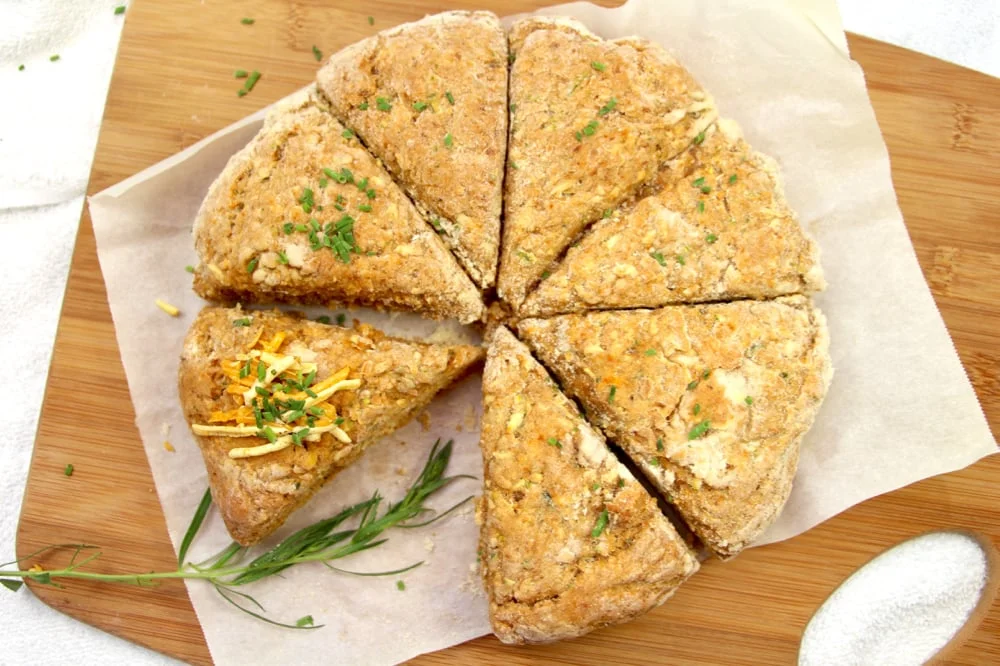 I have heaps of courgette frim the garden. I'm thinking of every way to work it into my cooking. These savoury scones pack in garden-fresh zucchini. Normally, I don't like fake food. But, Daiya has a fairly good imitation cheese. Adding a bit to this dish adds a nice flavour.