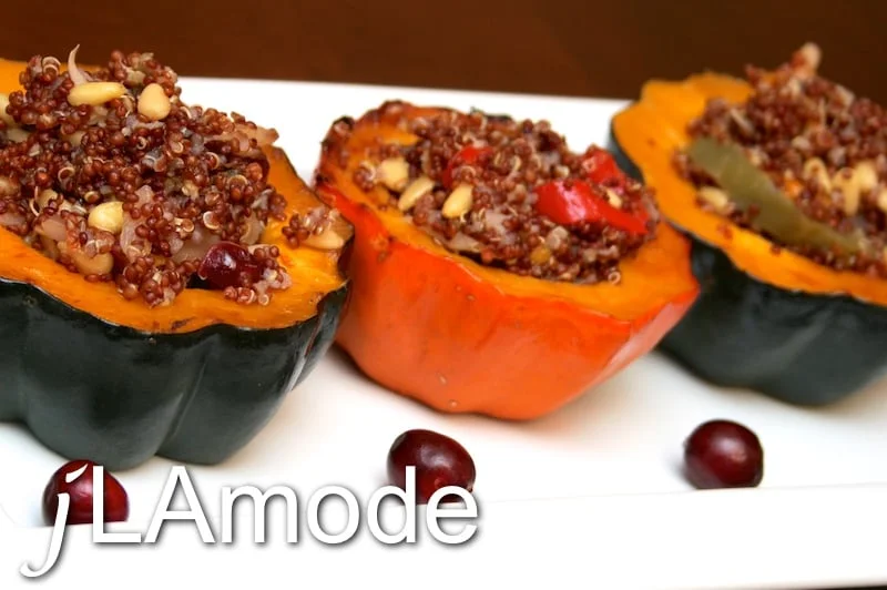 Serve with prepared quinoa and garnish with salted pistachios. Nutty, roasty and filling.